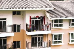 搬進(jìn)城中安置房后,在陽臺(tái)上依然制衣的婦女。