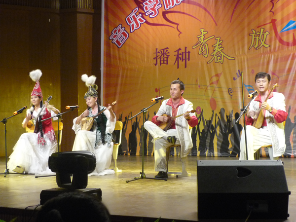 大膽創(chuàng)新、開門辦學、充分利用國內外教育資源,是音樂學院實現(xiàn)跨越式發(fā)展的有效途徑。近年來,學院先后聘請了嚴良堃、于潤洋、楊鴻年、樊祖蔭、李松、迪麗拜爾、金湘、劉賓、陳銘道、管建華、閻惠昌、王建民、阿依吐拉、李毓珊、江東、迪麗娜爾·阿布都拉、努斯來提·瓦吉丁、劉剛、王蕾、何曉兵、項陽等幾十位國內外著名學者和音樂舞蹈家長期擔任客座教授,舉辦了近百場學術交流報告。學院先后聘請了幾十位國內外著名學者和藝術家長期擔任客座教授。同時邀請民間藝術大師走進課堂。學校開放式的辦學模式已經(jīng)形成,在藝術實踐中實施素質教育培養(yǎng)具有“雙重音樂能力”的表演、教育人才已初顯成就。