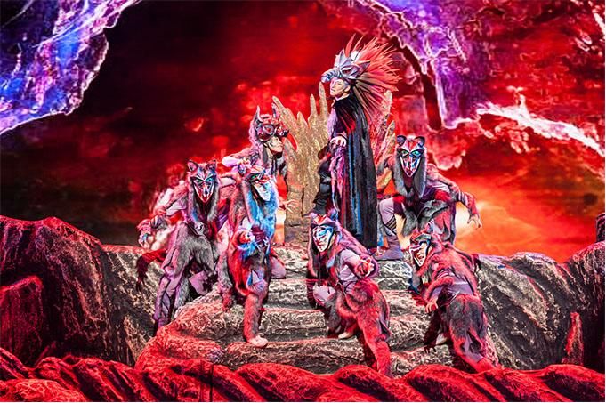 主創(chuàng)團隊選取“賀蘭山巖畫”“巖羊”等寧夏獨有的文化元素符號,以賀蘭山巖畫標志性的“太陽神”作為人物原型,以三個部落之間的結盟和沖突作為戲劇主線,準確地將巖畫藝術與雜技藝術巧妙融合,使其成為既有濃郁地域文化特色,又有巨大時空張力,更有人類共同情懷的雜技劇。