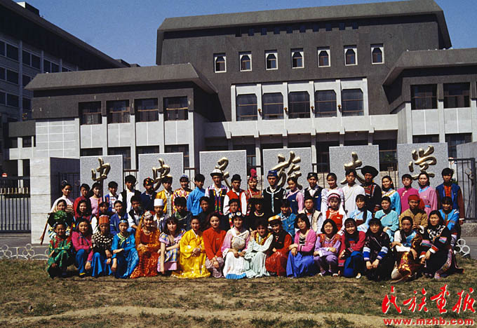 1991年,我國56個民族都有了自己的大學生,圖為1994年中央民族大學的各民族學生(中國民族圖片庫資料)