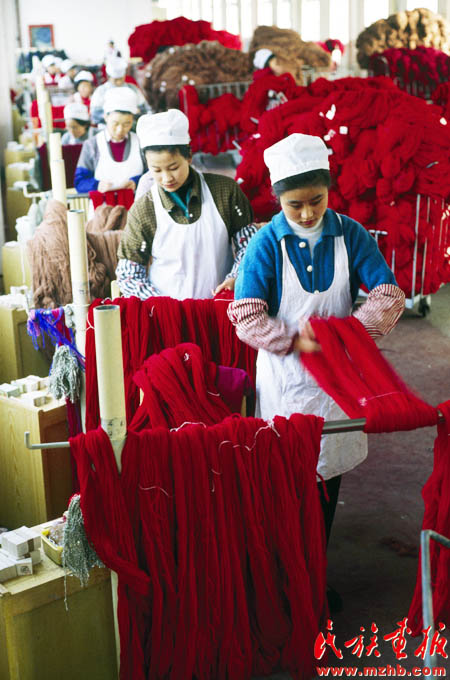 20世紀90年代初期,一些經(jīng)濟學家把戰(zhàn)略眼光投向資源豐厚的西部地區(qū),以促進中西部省區(qū)經(jīng)濟協(xié)作為目的的隴海蘭新經(jīng)濟帶悄然成型,并輻射至西亞和歐洲。圖為跨入全國800家最大工業(yè)企業(yè)行列的甘肅省天水市甘肅絨線廠?!睹褡瀹媹蟆?994年第4期