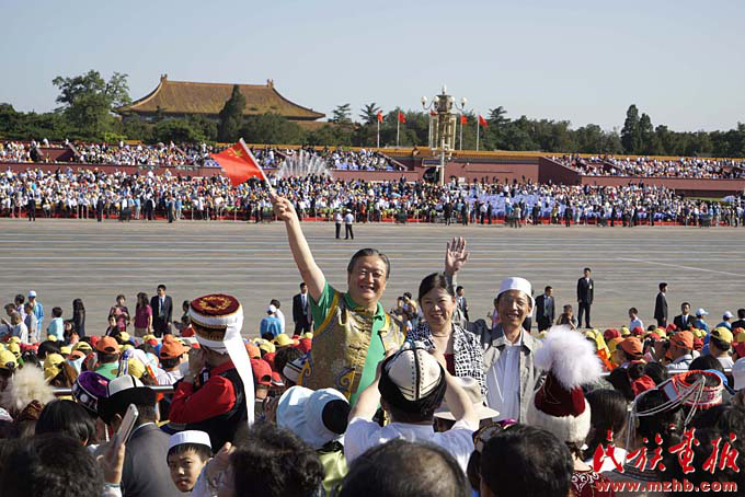 新中國成立以來,黨和國家始終堅持把馬克思主義民族理論同中國民族問題具體實際相結(jié)合,始終堅持把民族工作作為一項重大工作來抓,團結(jié)帶領全國各族人民共同團結(jié)奮斗,共同繁榮發(fā)展,開創(chuàng)了中國特色解決民族問題的正確道路,取得了舉世矚目的成就,積累了彌足珍貴的成功經(jīng)驗。2009年10月1日,在北京天安門廣場,20萬軍民以盛大的閱兵儀式和群眾游行歡慶新中國60華誕,圖為各民族學生參加“團結(jié)奮進”方陣群眾游行?!睹褡瀹媹蟆?009年第10期