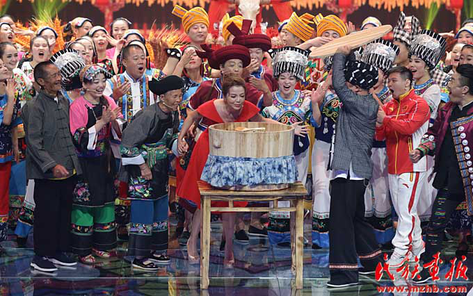脫貧致富的十八洞村民參加中央電視臺(tái)的《魅力中國(guó)城》比賽,向全國(guó)人民展示十八洞村的魅力,展示苗族群眾對(duì)美好生活的向往(湘西自治州州委宣傳部 供圖)