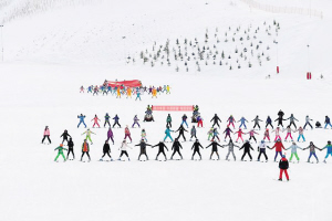 人們在阿勒泰市將軍山滑雪場參加慶?;顒?。