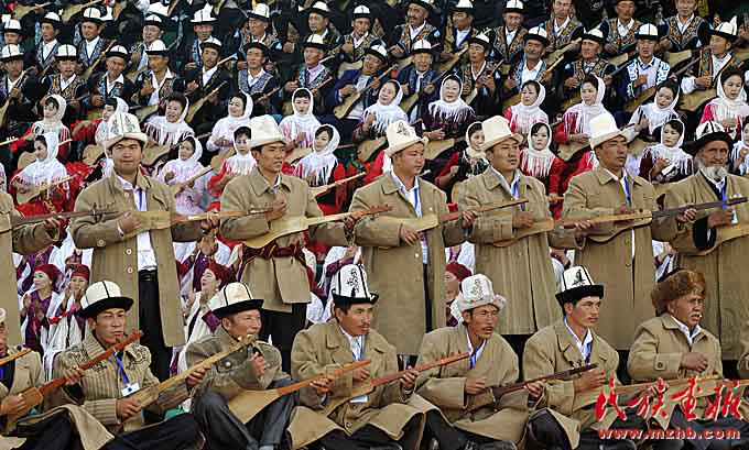 庫姆孜彈唱展演,由圖可見庫姆孜在柯爾克孜族中的普及程度(約提克爾·尼加提 攝影)