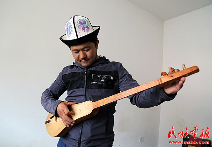 離開工作室,記者們來到了鄉(xiāng)里的文化站,10多個(gè)柯爾克孜族孩子正在學(xué)彈庫姆孜。站在一旁教學(xué)的老師是來自新疆師范大學(xué)大四的學(xué)生沙力哈爾別克·玉山巴依,學(xué)習(xí)音樂專業(yè)的他每年暑假都會回到自己的家鄉(xiāng)色帕巴依,為孩子們教授庫姆孜。他對記者說:“每次回家我都能感到孩子們對學(xué)習(xí)民族樂器的渴望。鄉(xiāng)政府也特別支持我,提供場地和經(jīng)費(fèi),能為孩子們教自己本民族的樂器,我也很高興。”