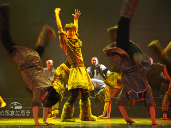 演員們的表演也頗為出色。參演的60多名演員全部來自鄂溫克自治旗烏蘭牧騎,這是一支以年輕人為主的隊(duì)伍,他們在舞臺上的精彩表現(xiàn)給這部歷史題材的歌舞劇增添了青春的活力。比如“搶樞”一場,不僅形象地再現(xiàn)了鄂溫克民間一項(xiàng)傳統(tǒng)娛樂活動——“搶樞”,突顯了年輕人活潑好動的特點(diǎn),而且傳達(dá)出鄂溫克年輕人在遷徙途中不畏艱險、苦中作樂的頑強(qiáng)精神。尤其是在本場最后,小伙子們一段奔放狂野的群舞盡顯陽剛之美,展現(xiàn)了鄂溫克民族的豪爽與激情。
