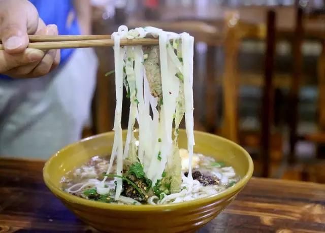 在貴定工商銀行旁邊,有一家吳記牛肉粉,他們家的牛肉丁大塊有嚼勁,味道也是相當(dāng)?shù)暮谩?/p>