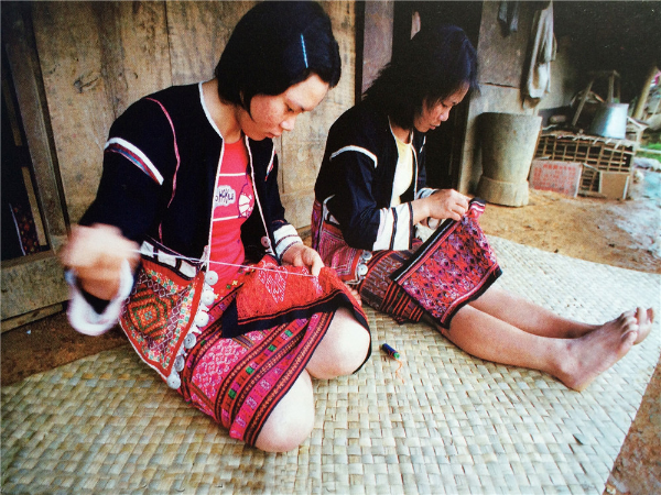 繡”是指黎族婦女用彩色線在棉、麻等布料上繡制出各種圖案,或者在織錦圖案編織完成后,再進(jìn)行補(bǔ)繡,提高圖案的效果。黎族織錦的主體圖案一般都是刺繡的,主體圖案中的若干局部都要靠刺繡來完成。