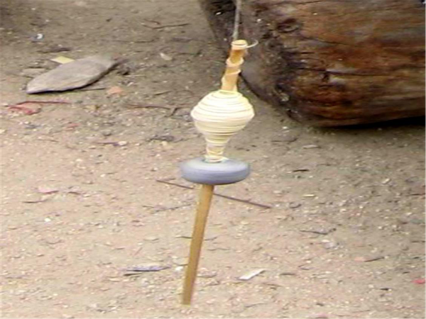 “紡”是把野生棉花或木棉花用絞棉機(jī)去除棉籽后捻成線,纏繞到手捻紡輪車上,包括錯紗、配色、綜線、攀花等。
