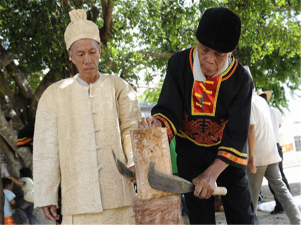 黎族樹皮布制作技藝:黎族制作樹皮布的歷史悠久,樹皮布是人類衣物從無紡布向有紡布發(fā)展的歷史見證。據(jù)考古學(xué)家研究,海南島樹皮布的歷史約有4000年。延續(xù)了數(shù)千年的樹皮布,記載了人類發(fā)展的歷程。盡管樹皮布已失去了它往日的作用,可是黎族人民卻不能忘記祖輩傳承下來的技藝。如今在哈方言、潤方言黎族中,有些家庭將制作樹皮布的技藝代代相傳,他們的子孫仍能識別制作樹皮布的樹種,并能掌握制作樹皮布的技術(shù),這對研究黎族早期無紡布有著重要的意義。然而,目前整個海南省掌握樹皮布制作技藝的民間藝人不足5人。