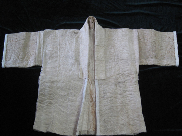 據(jù)了解,制作樹皮布的樹種有厚皮樹、黃九樹、構(gòu)樹(學(xué)名為楮樹)、見血封喉(又稱箭毒木)等,以見血封喉的樹皮加工出來的樹皮布質(zhì)地最好。制作樹皮布的步驟是:第一步:扒樹皮。首先制作能夠敲打和剝離樹皮的工具、選取樹干筆直、不長節(jié)、木質(zhì)較為堅(jiān)硬的樹木,砍成長40厘米、直徑為5厘米的兩根木棍。一根用刀把一頭削細(xì),用于敲打樹皮;另一跟把一頭削成木楔狀,用于剝離樹皮。根據(jù)需要制作的物件大小,扯一根藤,量一下樹干上方和下方之間的長度,再用鉤刀在樹的上、下方各砍一道記號,然后用木棍在記號的范圍內(nèi)敲打樹皮,使其蓬松,與樹干分離。在敲打的過程中,有經(jīng)驗(yàn)者通過聆聽木棍敲打在樹干上的聲音,就可以辨別出哪里還沒有敲打夠,于是繼續(xù)敲打該處,直到感覺整個樹皮已經(jīng)與樹干完全分離,這時才用鉤刀在上、下方作記號的地方把樹皮砍一圈,中間用刀豎著劃一道口子,再用特制的木楔棍一點(diǎn)一點(diǎn)地撬樹皮,將樹皮進(jìn)行片狀剝離。第二步:休整。將剝離下來的整塊樹皮壓平,除掉表皮,削掉節(jié)疤,拍打樹皮纖維,使其松動。第三步:漂洗。在水中進(jìn)行搓洗拍打,脫去樹膠,保留軟狀的樹皮纖維。第五步:曬干。將脫膠后洗凈(含有大量水分)的樹皮纖維晾干。第六步:拍打。把曬干的樹皮纖維拍打整平,使樹皮纖維分布均勻,呈片狀,于是制成樹皮布。最后將樹皮布裁剪、縫綴??p制樹皮衣的工序是:先把軟狀的單層樹皮布折成雙層,按人體結(jié)構(gòu)的大小裁剪出領(lǐng)口、袖口,再用自制的麻線縫綴成衣物。