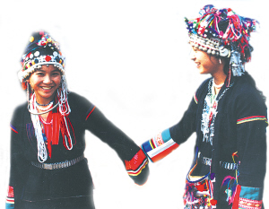 哈尼人是哈尼族的一個支系,大部分居住在云南省的瀾滄、孟連、景洪、勐海四縣的崇山峻嶺中。哈尼人勤勞勇敢,能歌善舞。在景洪縣的哈尼人山寨里,哈尼姑娘落落大方地為來客唱歌跳舞。由于特殊的地理環(huán)境,尤其是山高路遠(yuǎn)交通不便,哈尼人受外來文化影響較小,自然的封閉狀態(tài)較完整地保留了原始古樸的民風(fēng)民俗。其中最引人注目的是哈尼姑娘那峨冠錦繡的頭飾。無論在云霧繚繞的山寨,還是在榕蔭繁喧的集市,以及在林木蔥郁的山道上,隨處可看到哈尼姑娘們頭戴裝飾物的奇特繁多,猶如一件件精湛的工藝品頭飾,令人目不暇接,贊嘆不已。