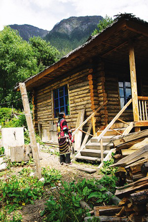 2006年,當(dāng)我再次出現(xiàn)在珞巴族小伙兒達(dá)瓦面前時,他簡直無法相信眼前的事實(shí),只是站在一步之遙的地方,默默地朝我笑著,笑容略帶羞澀。我問:“還記得我嗎?”他點(diǎn)點(diǎn)頭說:“你真的來了?!比缓蠼又f:“我們一起去看群宗(達(dá)瓦的妻子)吧!”于是,我跟著達(dá)瓦走進(jìn)了密林深處的西藏自治區(qū)林芝地區(qū)米林縣南伊珞巴族民族鄉(xiāng)的瓊林村。