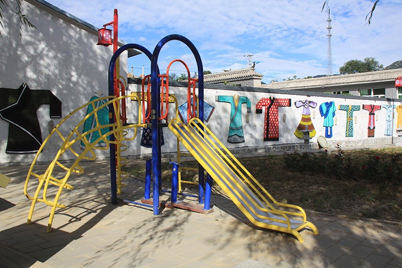 村子的胡同干凈整潔,精心設(shè)計(jì)的院墻上分別繪制著中國(guó)古代《二十四孝圖》浮雕、新編《二十四孝圖》彩繪圖、國(guó)學(xué)名言名句磚雕以及各種助人為樂(lè)兒童圖畫(huà)。