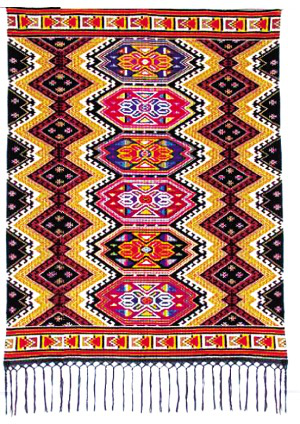 在長期的藝術(shù)實踐中,葉水云感到自己的專業(yè)美術(shù)水平有限。于是,她考入鳳凰職業(yè)中專學(xué)習(xí)美術(shù)專業(yè),并被留校任教,后又在湘西州教育學(xué)院進(jìn)修大學(xué)美術(shù)專業(yè)。“土家織錦沒有草稿,最重要的一個環(huán)節(jié)就是配色。以前配色沒有理論指導(dǎo),主要從個人感覺出發(fā),喜歡紅、綠等艷色系。除了講究圖案平整以外,配得好不好自己也不清楚。學(xué)習(xí)后才慢慢認(rèn)識到,配色應(yīng)注重冷暖色調(diào)的對比與襯托?!彼裕~水云織出來的“西蘭卡普”色彩更為統(tǒng)一調(diào)和,艷而不俗,粗獷中有細(xì)節(jié),大氣中有精巧,看上去更加舒服。