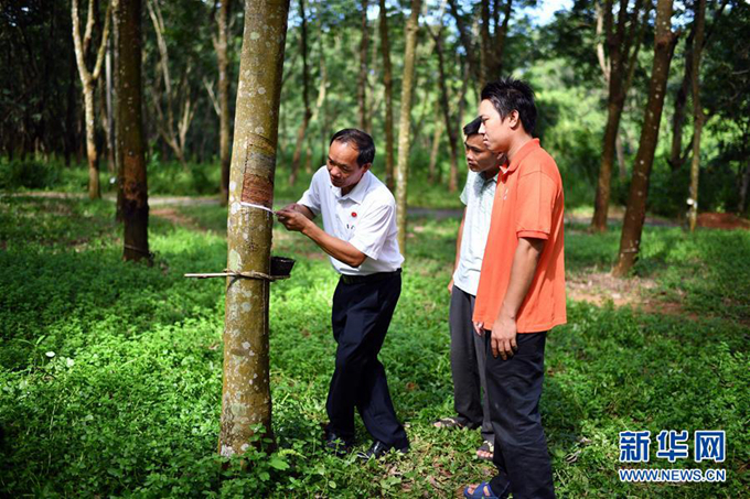 村民不想種,羊風(fēng)極和黨員干部們帶頭種;沒錢,他到鎮(zhèn)里、縣上跑扶貧種苗,幫助貸款;沒技術(shù),他邀請熱科院專家前來給村民們培訓(xùn)橡膠管理和割膠技術(shù)。廣泛宣傳和示范帶動加上熱心的服務(wù),村民們開始跟著他種植橡膠樹。如今,全村的山地基本上都種上了橡膠樹,僅此一項(xiàng),去年村民人均收入就達(dá)約6000元。