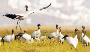 在草原腹地,隨時(shí)都會(huì)遇上藏野驢、藏狐貍,遠(yuǎn)遠(yuǎn)就能望見棲息在湖邊水草地上的珍稀黑頸鶴,甚至還能遇上草原的“清道夫”——金雕。