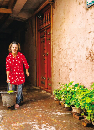 現(xiàn)代都市里的建筑多是封閉戶型,高臺民居則是半封閉的,一扇門封閉的是平視空間,但在平臺上可同時與比鄰的幾家相互通話。這種建筑本身就具有一種人情味,也就是說,喀什高臺民居是以群體的人文思想筑建房屋的。和睦的群體在房屋構(gòu)建時互相為鄰,一道墻壁兩家共用,一座過街樓閣成為幾家相互往來的空中過街橋,如果不是那種融洽的鄰里之情,高臺民居的特色也就蕩然無存了。