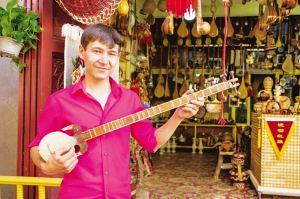 今年 22歲的玉買爾江·玉山。2005年冬天我見到他的時候,他邊上學邊在樂器作坊當小學徒,現(xiàn)在他已經(jīng)是一家商鋪的老板了。他既能制作樂器,又是出色的音樂人。隨著游客量不斷增長,他今年收入頗豐。