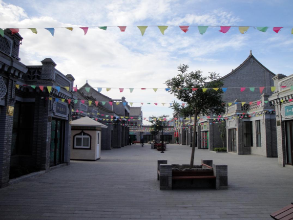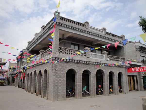 中華回鄉(xiāng)第一街位于永寧縣納家戶北側(cè)。該項目以納家戶清真大寺為中心擴(kuò)展門前廣場,以廣場為中心向北,直北長380米,東西寬107米,占地面積93.78畝,建筑面積1.6萬平方米,建成商鋪177套。所有建筑遵循當(dāng)?shù)鼗刈宓慕ㄖL(fēng)格,采用青磚砌筑,尤其在細(xì)節(jié)處理上用符號、色調(diào)與裝飾來表現(xiàn)回族建筑的精髓。雕梁畫棟,飛檐四出,并且在墻壁、牌坊、檐口、山墻等處運用了大量磚雕、伊斯蘭花飾等將伊斯蘭文化藝術(shù)與中國傳統(tǒng)建筑風(fēng)格有機(jī)的結(jié)合在一起,為景區(qū)增加了濃郁的歷史文化氛圍。該街道由北向南依次分為土特產(chǎn)區(qū)、民俗文化區(qū)、旅游紀(jì)念區(qū)、餐飲區(qū)、配套商業(yè)區(qū)五大功能區(qū)。