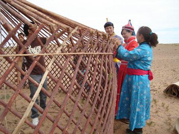 蒙古包主要由架木、苫氈、繩帶三大部分組成。