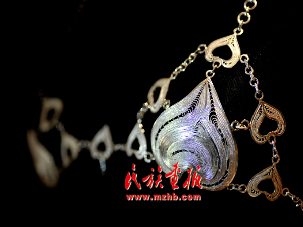 “苗族銀匠要根據(jù)本民族的傳統(tǒng)習(xí)慣、審美情趣,對(duì)銀飾細(xì)節(jié)或局部的刻畫(huà)注重推陳出新。當(dāng)然,這一切都必須以不觸動(dòng)銀飾的整體造型為前提。在保有傳統(tǒng)樣式制作的基礎(chǔ)上,我會(huì)積極進(jìn)行新樣式的開(kāi)發(fā)和創(chuàng)新,將銀飾產(chǎn)品的生產(chǎn)延伸到旅游產(chǎn)品、藝術(shù)品和紀(jì)念品的開(kāi)發(fā)上來(lái),創(chuàng)作出更加精湛的銀器產(chǎn)品,讓苗銀飾品綻放出獨(dú)特的風(fēng)韻?!痹谧约杭业你y飾博物館里,龍?zhí)?yáng)侃侃而談。