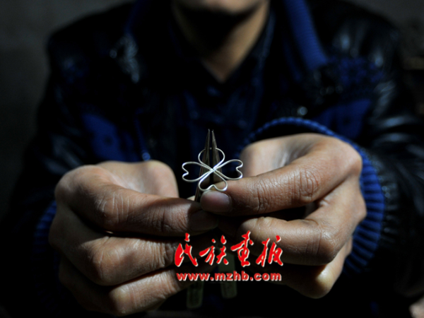走進(jìn)龍?zhí)?yáng)的苗族銀飾傳承工作室,一件件銀飾讓人目不暇接,嘆為觀止??此破掌胀ㄍǖ你y片、銀條,在他的手里富有生命力的藝術(shù)作品,每個(gè)制作細(xì)節(jié)和過(guò)程都透著一股精致。