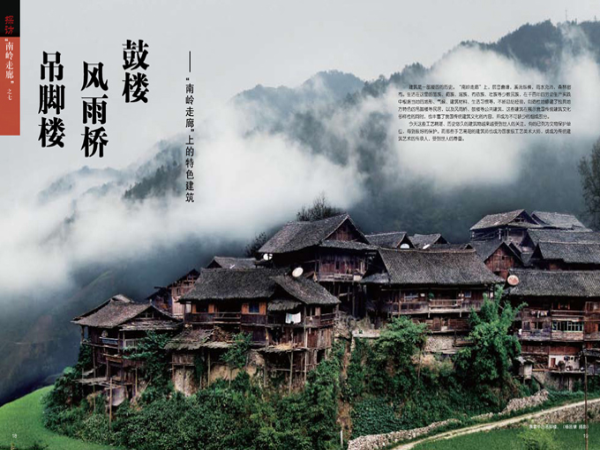 建筑是一部凝固的歷史。“南嶺走廊”上,層巒疊嶂,溪流縱橫,雨水充沛,森林密布。生活在這里的苗族、侗族、瑤族、布依族、壯族等少數(shù)民族,在千百年的勞動生產(chǎn)實踐中根據(jù)當(dāng)?shù)氐牡匦?、氣候、建筑材料、生活?xí)慣等,不斷總結(jié)經(jīng)驗,創(chuàng)造性地修建了獨具地方特色的吊腳樓等民居,以及風(fēng)雨橋、鼓樓等公共建筑,這些建筑在展示我國傳統(tǒng)建筑文化多樣性的同時,也豐富了我國傳統(tǒng)建筑文化的內(nèi)容,成為不可缺少的組成部分。