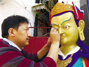 西藏自治區(qū)拉薩市城關(guān)區(qū)恰彩崗路11號(hào)是八廓街東面諸多巷院里一個(gè)極其普通的大院。在這里,一個(gè)集土建、唐卡繪畫、金屬雕刻、木雕、古藝建筑研究、西藏傳統(tǒng)手工藝技能培訓(xùn)為一體的國(guó)家文化產(chǎn)業(yè)示范基地——拉薩古藝建筑美術(shù)公司就坐落在這個(gè)古樸的大院內(nèi)。