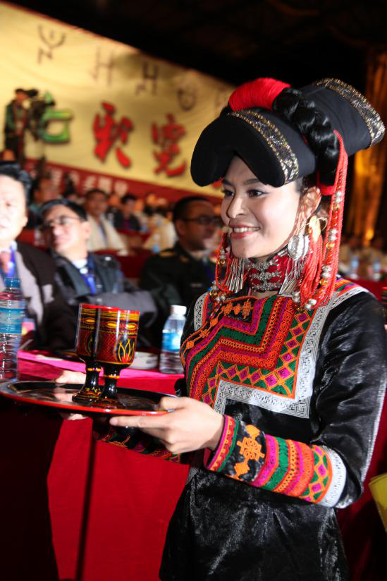 彝族姑娘給客人敬酒(劉軍供圖)