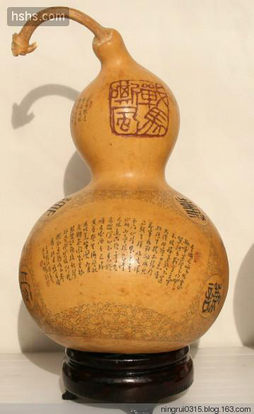 葫蘆雕集繪畫、書法、篆刻藝術(shù)于一體,傳承和發(fā)展了我國傳統(tǒng)“葫蘆文化”。甘肅的雕刻葫蘆最早出產(chǎn)于蘭州,距今約100多年,據(jù)說早期的蘭州雕刻葫蘆比較簡(jiǎn)單,對(duì)葫蘆不會(huì)做刮皮、磨光等加工處理,也不填色;只是在葫蘆表皮雕刻出山水、風(fēng)景或戲劇人物,作為兒童的玩具,在街頭巷尾出售。到了清代光緒年間,秀才蘭州人李文齋對(duì)葫蘆雕刻工藝做了改進(jìn)。他針對(duì)當(dāng)時(shí)雕刻表面粗糙、題材單調(diào)的弊端,首先將葫蘆原生表皮刮去、磨光,并用鏹水混合燃料,染成紅黃二色,是雕刻的景物不易脫落;其次,擴(kuò)大圖案創(chuàng)作題材,在原有山水、花草等圖案基礎(chǔ)上,增加了如《桃花源記》、《蘭亭集序》、《竹林七賢》等歷史文化和神話故事,形成了圖文并茂的題材格局;最后是在雕刻工具上采用了以針代刀,使圖案形象更加情景交融,栩栩如生。其雕刻葫蘆的特點(diǎn)主要是求其意態(tài)之美,追求神似;人物寥寥數(shù)筆,山水花卉濃淡相宜,形神兼具,求其風(fēng)雅;題款文字、細(xì)如蚊足,點(diǎn)綴成行,瀟灑自如。