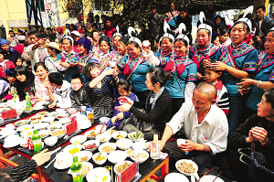 “中國紅河·元陽2009年哈尼梯田文化旅游節(jié)”上,哈尼族群眾擺下360桌、近0.5公里長的哈尼族長街宴,用最隆重的禮儀和風味美食,迎接來自海內(nèi)外的賓客。