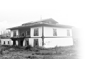 云南省迪慶藏族自治州首府香格里拉縣地廣人稀,考慮到向陽、通風與防潮,當?shù)夭刈逋姆孔佣冀ㄔ诎肷缴?,戶與戶之間有的相隔一個足球場那么大,間隔的地方開滿了格?;ā?月的格?;ㄩ_得熱烈而燦爛 ,像藏族少女熟透的愛情,給極富特色的藏族民居增添了些許詩意。