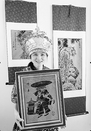 一幅幅人物肖像、書法作品、風景風情畫,工藝精細,造型典雅,誰能想到,它們出自一群苗家留守婦女之手?