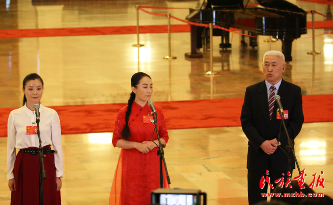 中國共產(chǎn)黨第十九次全國代表大會代表徐俊在北京人民大會堂接受采訪時發(fā)言( 滕俊 攝影)