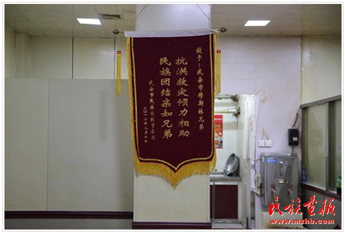 楊勇智在冒著熱氣的羊湯店中向記者回憶起了2016年7月19日那天武安爆發(fā)洪災(zāi)的事情。當(dāng)天他第一時(shí)間組織了周圍的群眾和穆斯林朋友們進(jìn)行抗洪救援的事情還歷歷在目。他說,民族之間的團(tuán)結(jié)在任何地方都是一股力量。為此,武安市民族宗教事務(wù)局對(duì)楊勇智的行為給予了極大的肯定,并將“抗洪救災(zāi)傾力相助,民族團(tuán)結(jié)親如兄弟”的錦旗贈(zèng)予楊勇智和他的穆斯林朋友們。