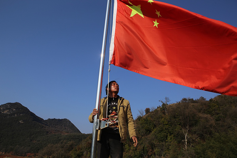 2月初的丘北,連日陰雨,是一年中最冷的時(shí)節(jié)。我先于拍攝團(tuán)隊(duì)幾天到了村里,想獨(dú)自在這里轉(zhuǎn)轉(zhuǎn),熟悉一下村民,篩選一下拍攝的人物。正當(dāng)我在一個(gè)泥濘的岔路口徘徊,尋思著是否要問(wèn)路去村主任家的時(shí)候,旁邊屋子里走出一個(gè)人,面容親善:“天好冷啊,進(jìn)來(lái)烤烤火吧!”他打招呼的方式如同熟人,一笑時(shí)露出兩排又白又整齊的牙齒。于是,他家擁擠的火塘邊又多了一個(gè)人。大家圍著火爐有一搭沒(méi)一搭地聊天,語(yǔ)調(diào)溫和小聲,沒(méi)話的時(shí)候大家也不覺(jué)得別扭,只聽(tīng)見(jiàn)玉米骨在火塘里噼啪作響。這是一個(gè)五代同堂的大家庭,招呼我的主人楊樹(shù)紅和妻子以及祖母、父母一起生活,兒子和女兒在廣東打工,已經(jīng)回村準(zhǔn)備過(guò)節(jié),兒子未婚,女兒則有了兩歲的孩子。楊樹(shù)紅的祖母出生于1922年,是這個(gè)村子里最老的老人,耳朵有些背。我大聲問(wèn)她是否還記得年輕時(shí)候踩花山,她拍著我的手背說(shuō):“17歲我就去踩花山嘎!好玩嘎!”兒媳笑著解釋說(shuō):“估計(jì)她說(shuō)的是17歲踩花山的時(shí)候碰到爺爺,被他拖媳婦拖走的事呢?!弊婺改昙o(jì)太大,看著她手上和臉上深深的褶皺,不知藏了多少往事。