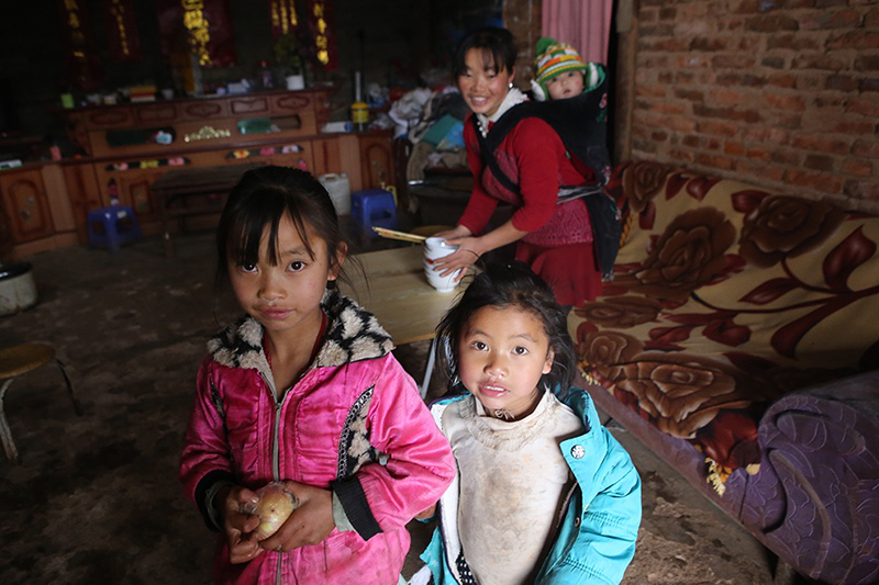 美芬的媽媽是個(gè)非常聰慧能干、愛(ài)說(shuō)愛(ài)笑愛(ài)打鬧的人,喜歡開(kāi)玩笑,也能看出很隱忍。在美芬媽媽的鼓動(dòng)下,我和她在花山場(chǎng)玩起了打木秋。木秋比我小時(shí)候玩過(guò)的蹺蹺板大了好幾倍,最高處離地估計(jì)有五六米,每次對(duì)方雙腳蹬地彈起時(shí),我這邊就會(huì)以失重的感覺(jué)落地。那種在風(fēng)中快速下降的緊張刺激只有通過(guò)尖叫才能釋放,而每次我失控大叫的時(shí)候,底下村民都會(huì)一片哄笑。下了木秋,感覺(jué)還在騰云駕霧。美芬的媽媽過(guò)來(lái)架著我的胳膊哈哈大笑,像個(gè)小姑娘。她40歲不到,但常年勞累以及沒(méi)有好好保養(yǎng),看上去比實(shí)際年齡大了不少。聊起女兒的未來(lái),她呵呵一樂(lè)說(shuō):“我不擔(dān)心她嫁不出去,讀好書(shū)再說(shuō)。我當(dāng)年是沒(méi)有其他機(jī)會(huì),所以早早結(jié)婚了,她現(xiàn)在有條件了,那么著急做什么!”