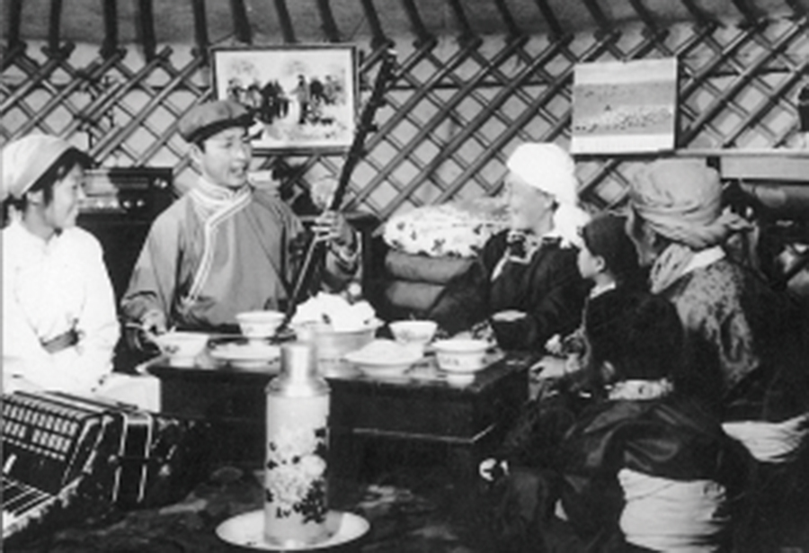 烏蘭牧騎的全國巡演,源于1964年底的全國少數(shù)民族群眾業(yè)余文藝觀摩匯演。當(dāng)時內(nèi)蒙古自治區(qū)文化局從全區(qū)各旗縣抽調(diào)15名藝術(shù)骨干,組成烏蘭牧騎代表隊,進(jìn)京匯報演出。進(jìn)京匯演以蒙古族傳統(tǒng)歌舞形式為主,如蒙古族說書“好來寶”、馬頭琴獨奏、安代舞、頂碗舞等。這些歌舞、說唱無論在過去還是現(xiàn)在,都是蒙古族音樂藝術(shù)的典型代表。但就這些藝術(shù)形式所表現(xiàn)的具體內(nèi)容而言,則以反映當(dāng)時社會政治文化生活主題的作品占絕大多數(shù),如《巡邏之夜》、《為祖國鍛煉》、《達(dá)西是個好戰(zhàn)士》、《唱支山歌給黨聽》、《紅旗一代傳一代》等。進(jìn)京之后烏蘭牧騎演員受到國家領(lǐng)導(dǎo)人的接見,并由周恩來總理提議向全國推廣。短小精悍的藝術(shù)表演形式,濃郁的民族風(fēng)情,使其成為傳播民族政策和促進(jìn)民族團(tuán)結(jié)的有力工具。