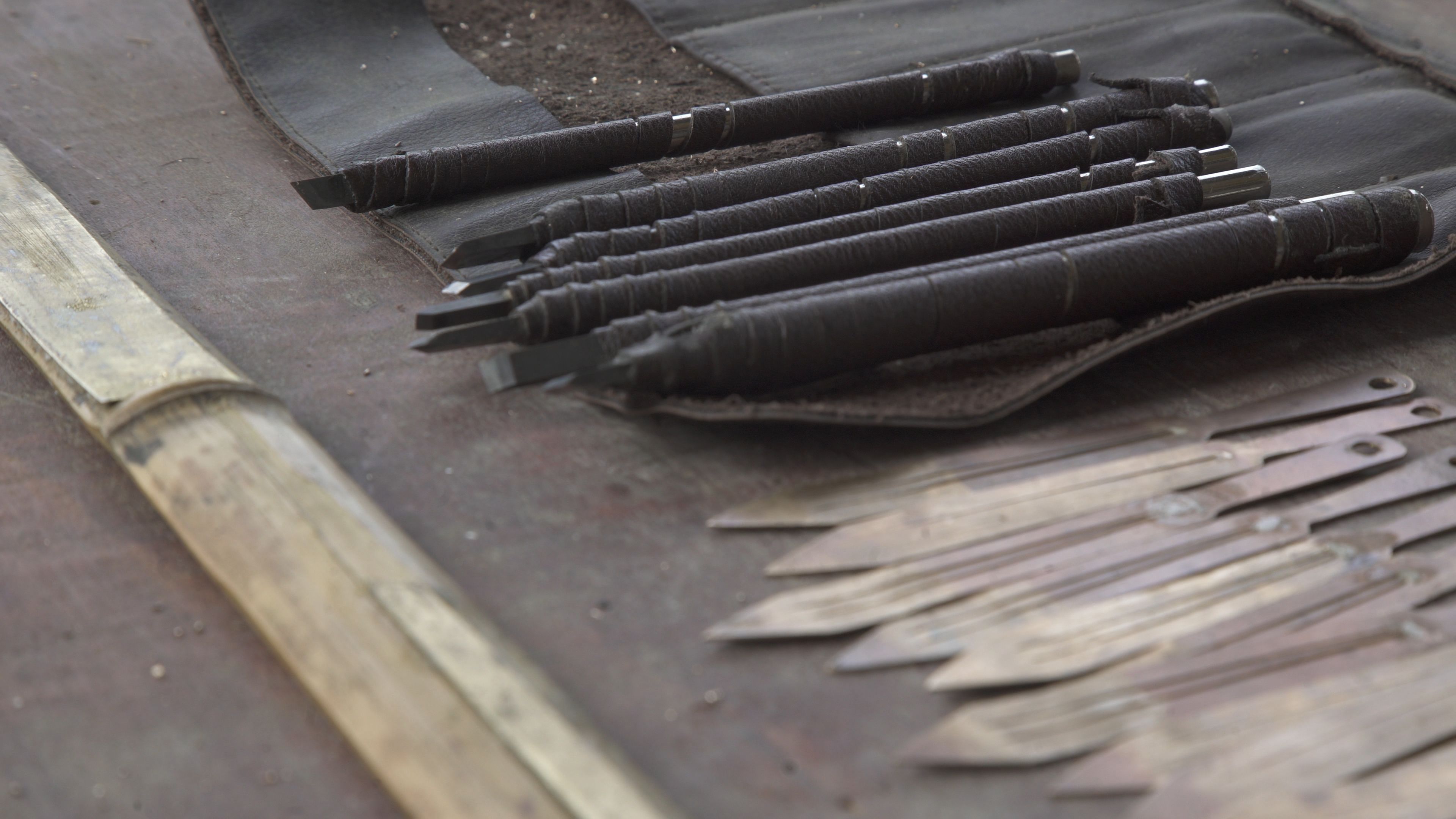 圖片說(shuō)明:貴州貴陽(yáng)清鎮(zhèn)市流長(zhǎng)鄉(xiāng)腰巖村苗族制作口弦所需工具-鑿子