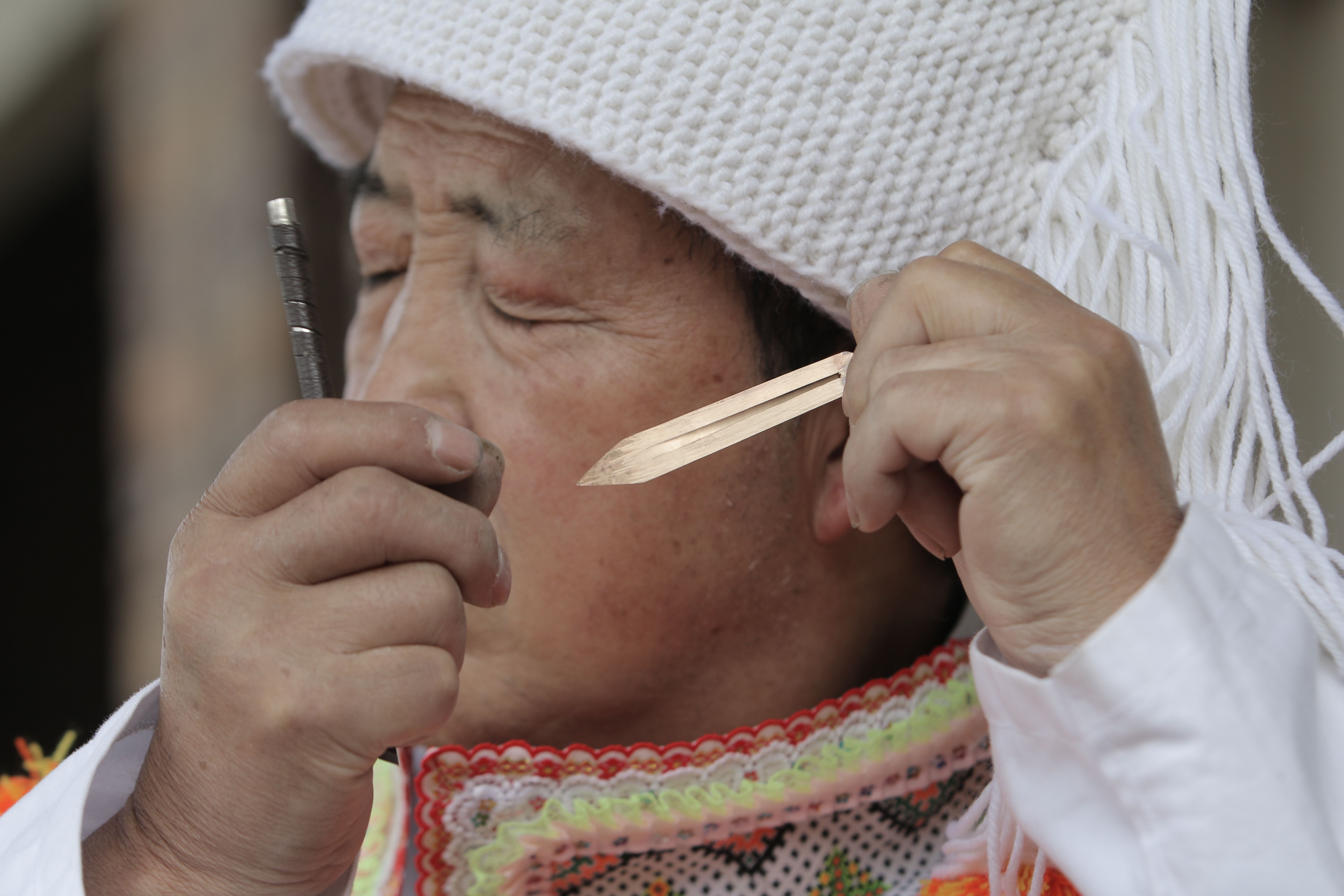 圖片說明:貴州貴陽苗族口弦制作手藝人