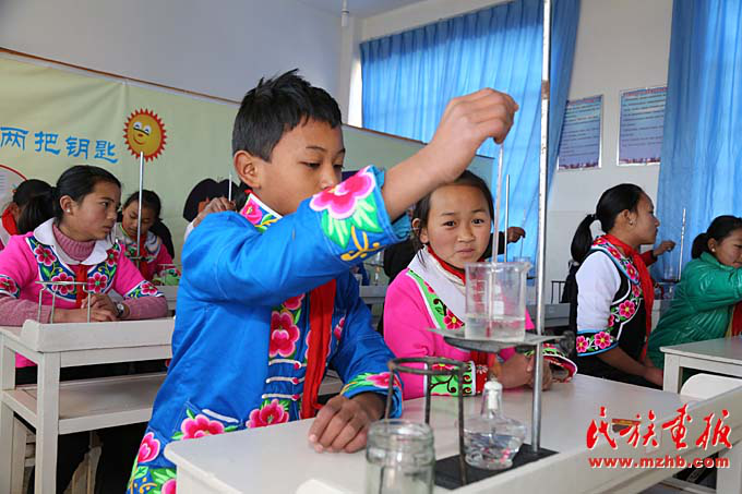 臘灣民族小學(xué)四年級的學(xué)生在上實(shí)驗課