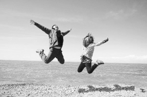 青海湖位于青海省海北藏族自治州剛察縣南部,是中國最大的內(nèi)陸咸水湖。碧波浩瀚,鳥翼如云的青海湖,盛夏時(shí)節(jié)平均氣溫僅15攝氏度,為天然避暑勝地。圖為游客在青海湖畔縱身躍起。 吳光于攝