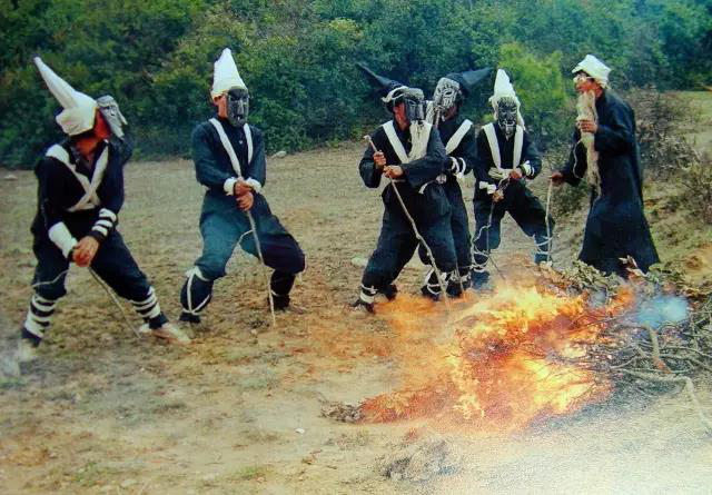 “撮泰吉”是彝語(yǔ)的稱謂,屬于彝族的一種古戲,譯意為“變?nèi)说膽颉保且妥逯匾脑甲诮绦叛龊兔褡屣L(fēng)情習(xí)俗。每當(dāng)春節(jié)期間正月初三至十五和六月二十四至二十六的火把節(jié)期間,貴州最高峰韭菜坪山脈一帶的赫章、威寧彝族同胞就會(huì)演出《撮泰吉》,舉行“掃火星”的驅(qū)邪納吉活動(dòng)儀式,祈求火災(zāi)、瘟疫遠(yuǎn)離人們,讓平安幸福永遠(yuǎn)伴隨彝家。演出的內(nèi)容有祭祀祖先、民族遷徙、拓荒耕種、買(mǎi)賣牲畜、交配繁殖后代等,最后才逐戶為全寨掃除火星。