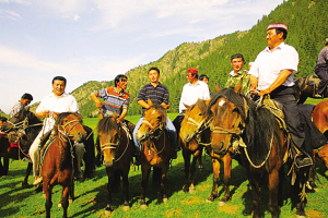 座談會結(jié)束后,大家又來到新地溝草原,舉行哈薩克族民間傳統(tǒng)體育活動,哈薩克族群眾紛紛參加姑娘追、摔跤、叼羊、賽馬等活動。一時(shí)間人聲鼎沸,歡歌笑語,草原上呈現(xiàn)出一片歡悅的景象。