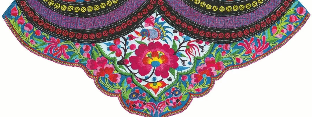 彝族婦女圍腰,是女性審美的結(jié)晶,實用美觀。圍腰是最能集中體現(xiàn)彝族女性心靈手巧的女紅作品,因此成為青年男子傳統(tǒng)擇偶的重要標準之一。每條彝族圍腰,須經(jīng)過剪紙、裁剪、刺繡、挑花、配飾等環(huán)節(jié),每一個細微的過程都傾注了彝女的聰明與才智。事實上,彝族婦女圍腰,還蘊含著重要的彝族社會歷史、文化信息。