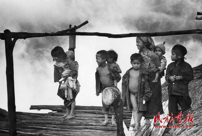 王藝忠一次次爬山深入拍攝,并與他們同吃住,目睹著布朗族日出而作、日落而歸,住在狹小、幽暗的茅屋里靠鹽巴、辣椒、野菜度日;晚上在火塘邊,一家三代擁擠在幾條破毯子下入眠。由于大山阻隔,人們不知外面的世界,更不知什么是“商品意識”“現(xiàn)代社會”。那時,村民們蓋房用的草片,先要步行數(shù)公里甚至到境外割茅草,并將其曬干、背回才能編織。一個全勞力從割草開始,需投入最少三天以上時間才能編織成30片草片,每片價值0.10元,辛勞一天的報酬才不足一元。