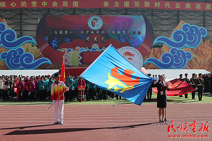 云南省少數(shù)民族運(yùn)動(dòng)會(huì)國(guó)旗、會(huì)旗方陣入場(chǎng)