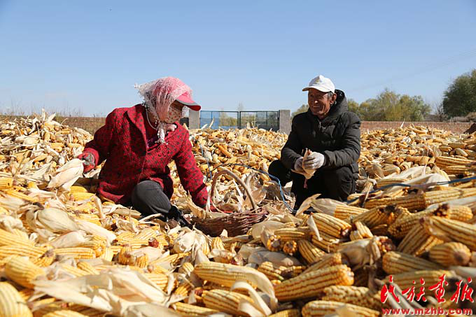 陳綠師老兩口忙著處理剛收的6萬斤玉米(陳濤 攝影)